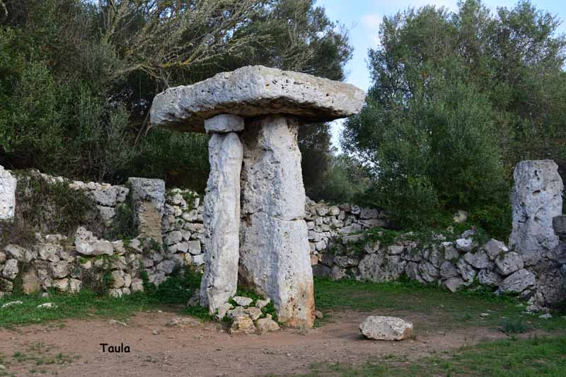 La culture talayotique est la civilisation qui s’est développée aux Baléares, et plus précisément à Majorque et à Minorque. Les premières occupations humaines de Minorque datent de 5000 ans avant J.-C., mais l’île n’a été peuplée de manière permanente qu’à partir du troisième millénaire avant J.-C. De nombreux vestiges (tombes, nécropoles, villages, sanctuaires), très bien conservés, datent de cette époque : les taulas (deux énormes pierres posées l’une sur l’autre, en forme de T), les talayots (tours de forme arrondie, vraisemblablement utilisées pour la surveillance), les navetas (mégalithes funéraires en forme de bateau renversé. On comptabilise environ 1.500 sites talayotiques sur toute l’île, soit environ deux par km2…