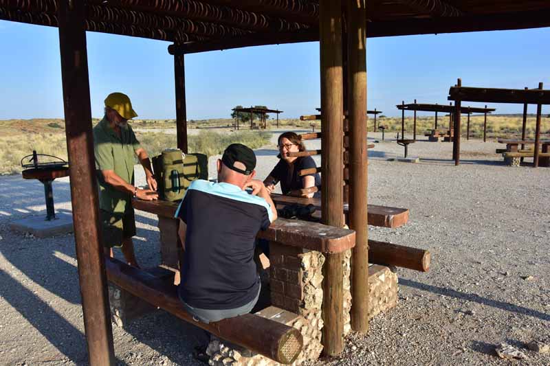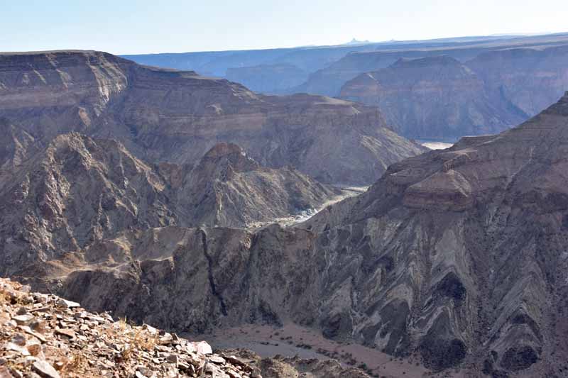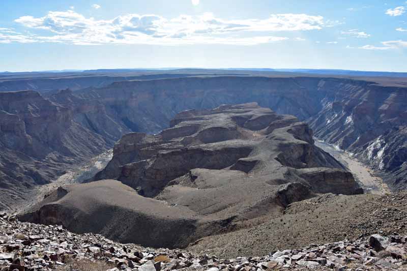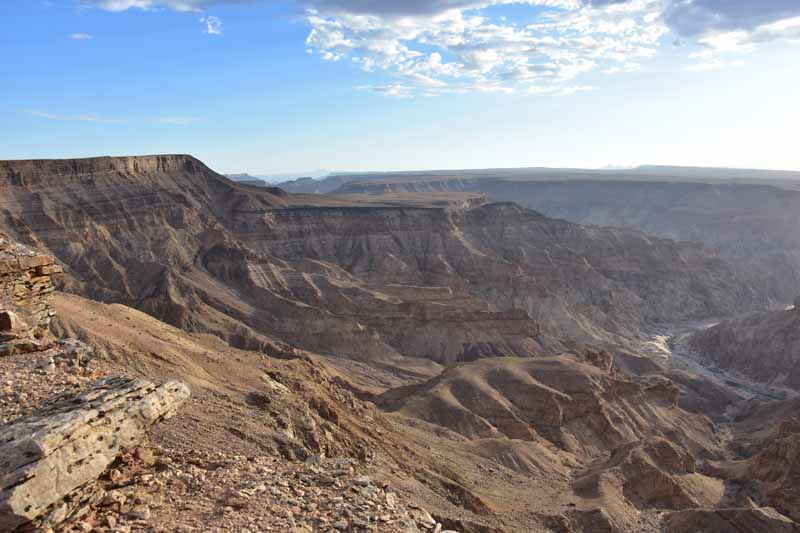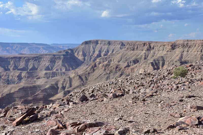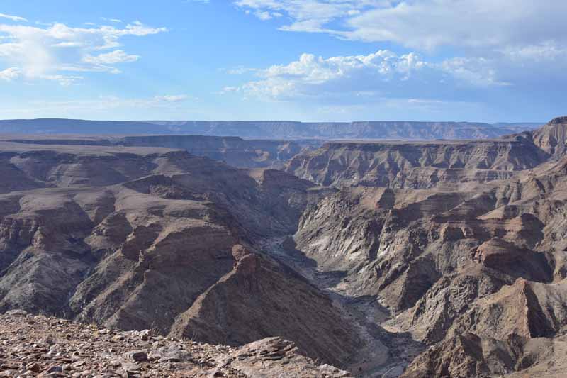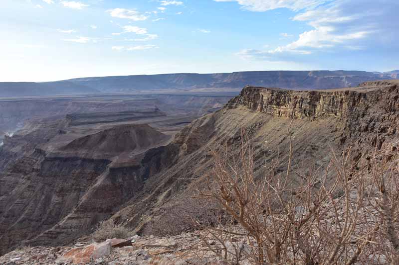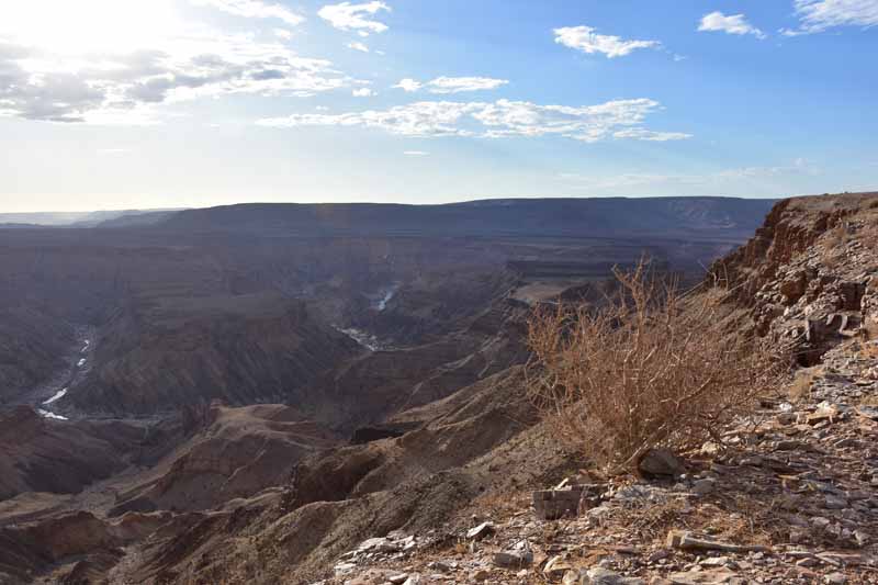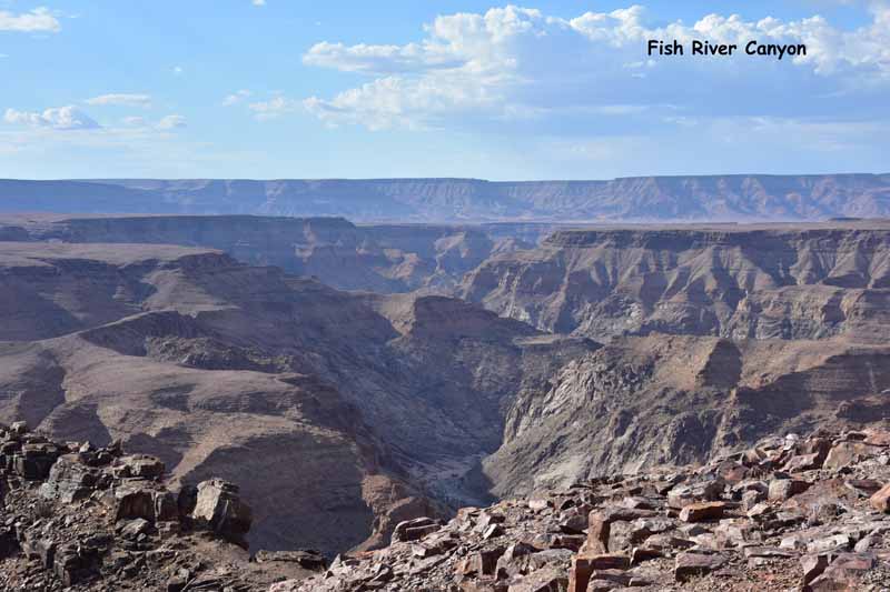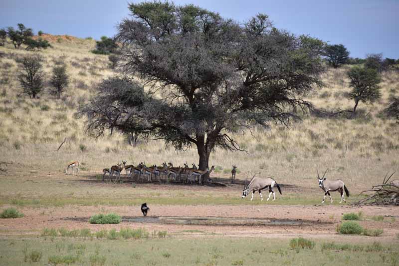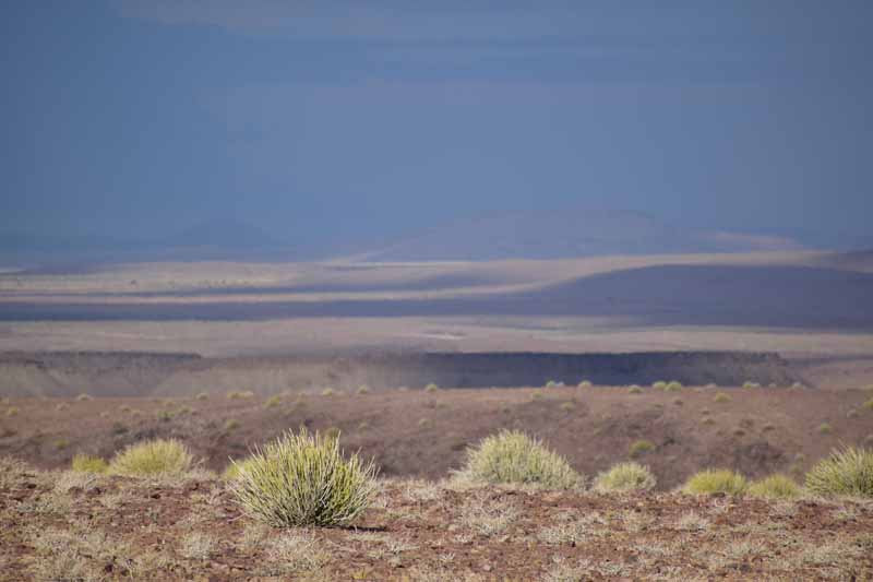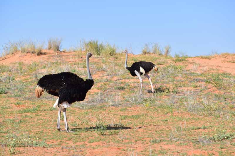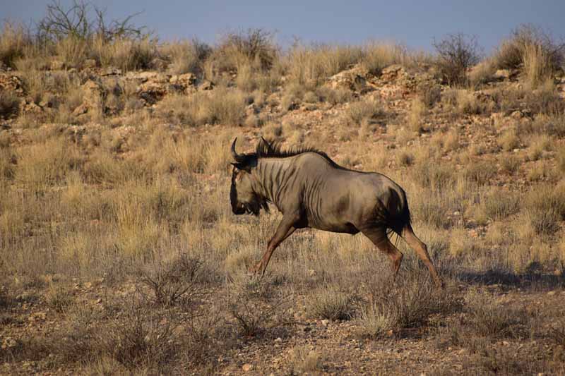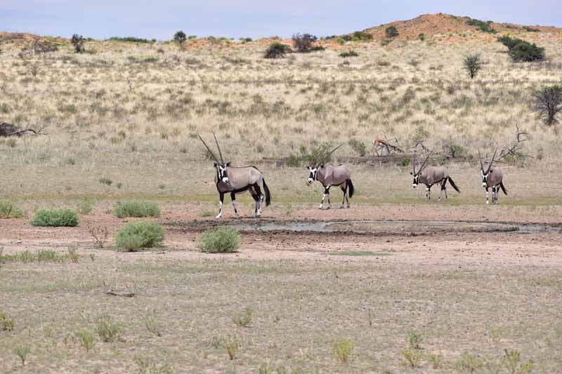 Pendant ces 12 jours, nous avons parcouru environ 4 500km ce qui fait une belle moyenne journalière ! Il faut savoir que la Namibie a une superficie d’une fois et demie la France et que les distances sont longues entre chaque point d’intérêt. Par contre, la route ne semble jamais ennuyeuse car les paysages sont de toute beauté et, contrairement à d’autres pays où l’on ne voit les animaux que dans les réserves (tels le Kenya et la Tanzanie), ici on peut les observer un peu partout dans la nature, particulièrement les antilopes, les zèbres et autres autruches ! Pour notre part, c’est un pays qui nous envoûte dès que nous y mettons un pied… et c’est la 4ème fois ! A chaque fois, nous visitons des endroits différents : la 1ère fois, il y a 20 ans, nous avions fait un circuit complet de découverte, du Nord au Sud, la 2ème fois le Nord-Est en traversant le parc de Khaudum pour rejoindre le Botswana et en 2011 nous nous étions axés sur le Nord jusqu’aux chutes d’Epupa à la frontière angolaise… C’est pourquoi nous avons choisi le Sud cette fois-ci ce qui nous a permis de découvrir des endroits encore inconnus pour nous : Luderitz, Kolmanskop et Diaz Point et le Parc Transfrontalier du Kgalagadi…
