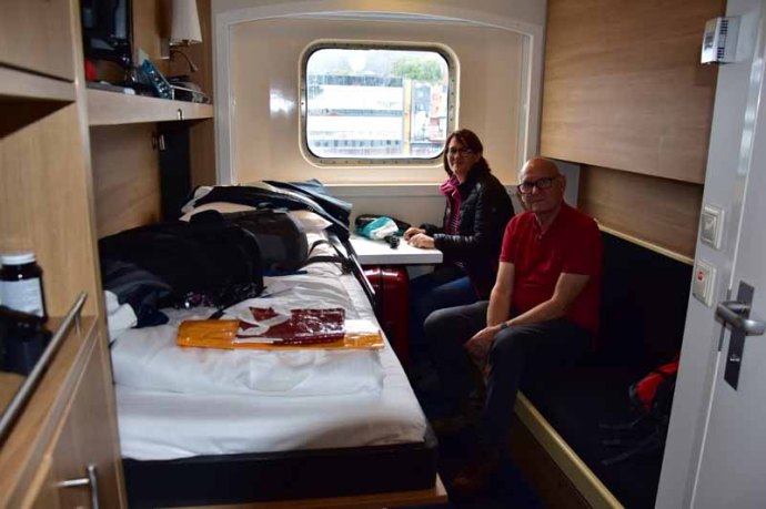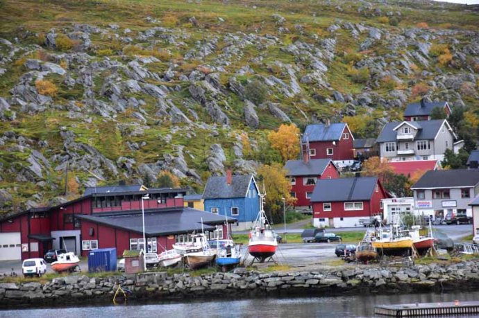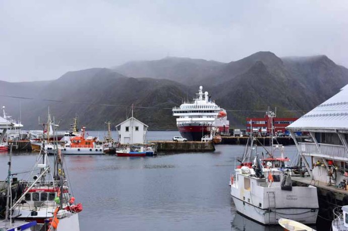 Après une nuit assez houleuse (ce qui n’a pas empêché Pépère et Blandine de dormir sur leurs 2 oreilles !), nous avons fait une toute petite escale d’¼ d’heure, puis avons continué notre route jusqu’à Honningsvag où nous sommes arrivés à 11h15.