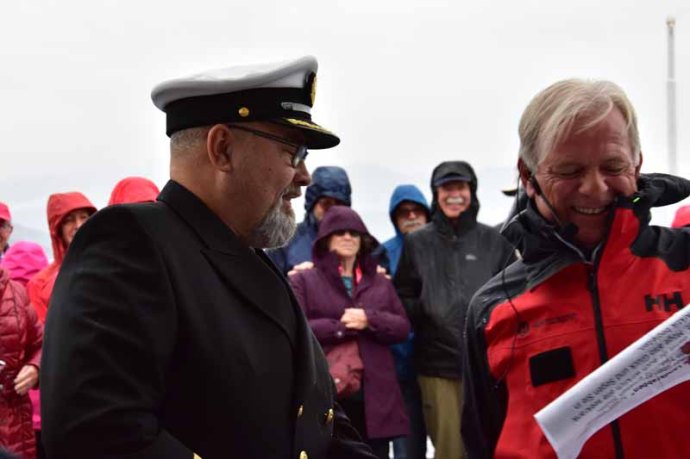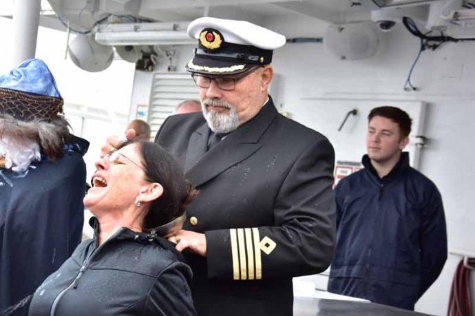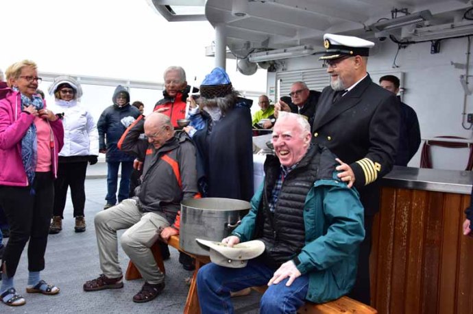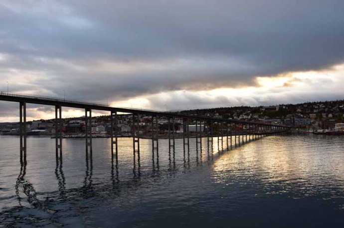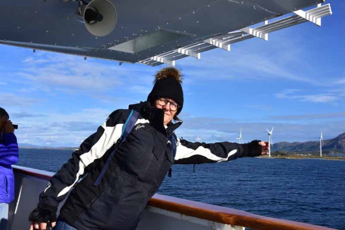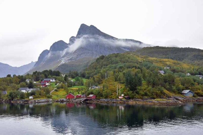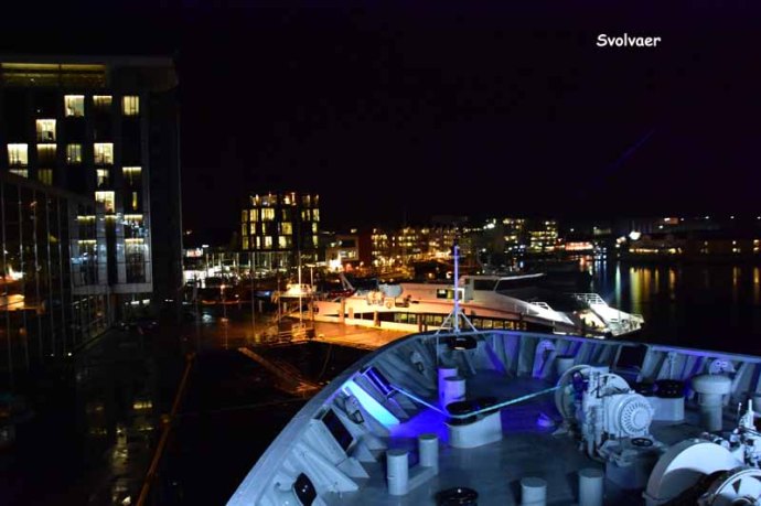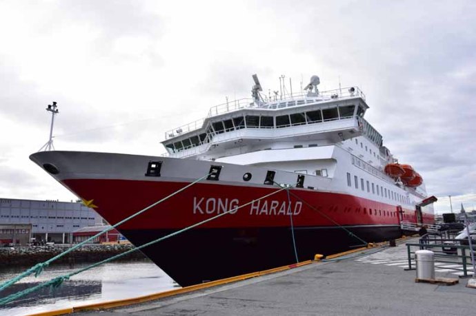 Nous avons repris la mer, encore bien agitée !!! Nous venons de faire une escale à Kjollefjord, où, c’est évident, nous ne sommes pas prêts de venir nous installer malgré la beauté de l’endroit. Nous avons embarqué du poisson, nous ne savons pas s’il vient du séchoir situé juste à côté du bateau ! En pénétrant dans le fjord, nous passons près de Finnkirka, ancien site sacrificiel du peuple Sami, c’est une roche qui a subi les assauts des vagues depuis des millions d’années. Les falaises sont hautes et menaçantes. Nous pénétrons maintenant dans la mer de Barentz… Demain matin, à 9h, nous arriverons à Kirkenes à 10kms de la frontière russe. Escale de 3h30 et demi-tour, on repart ! On ne chôme pas chez Hurtigruten !!!!!