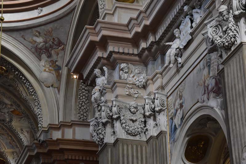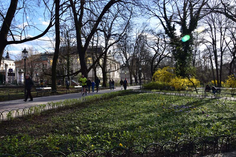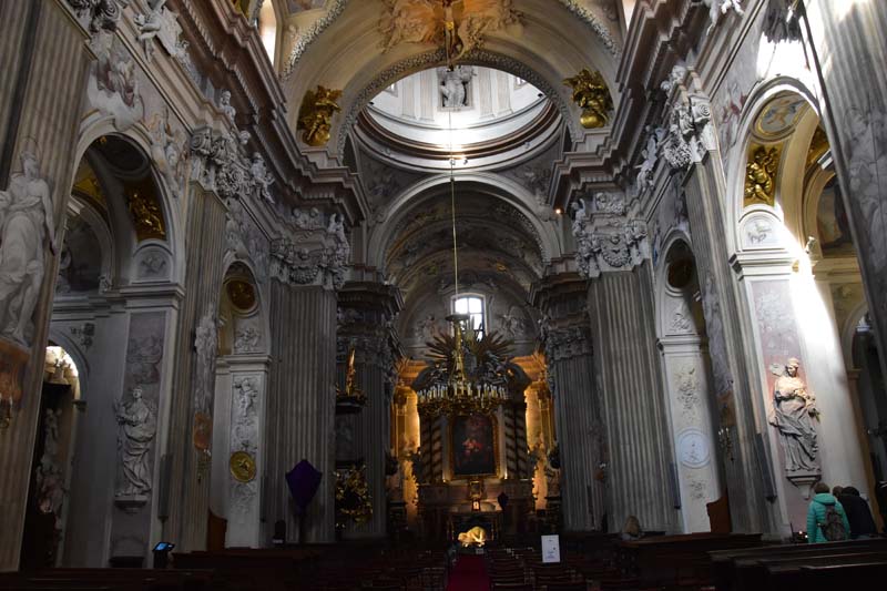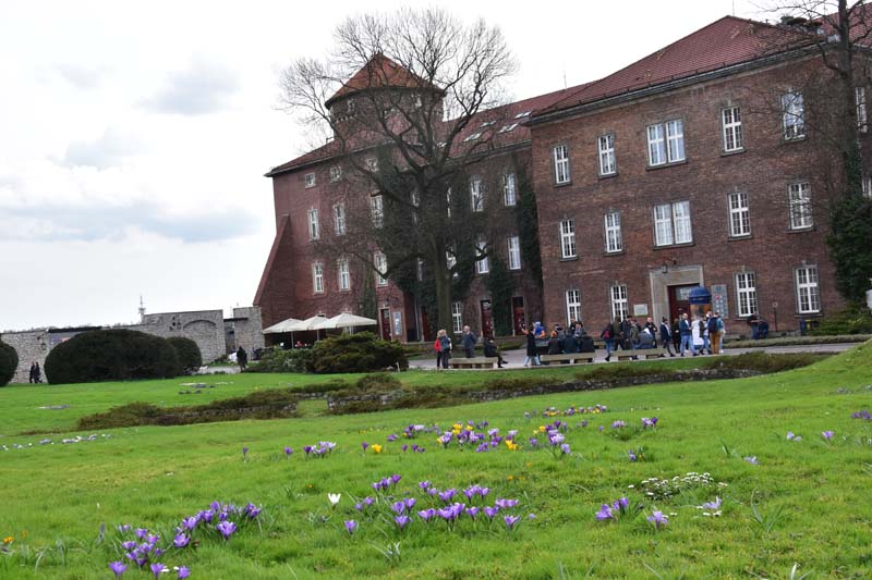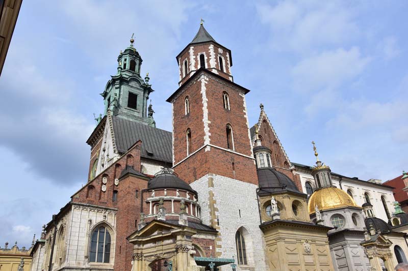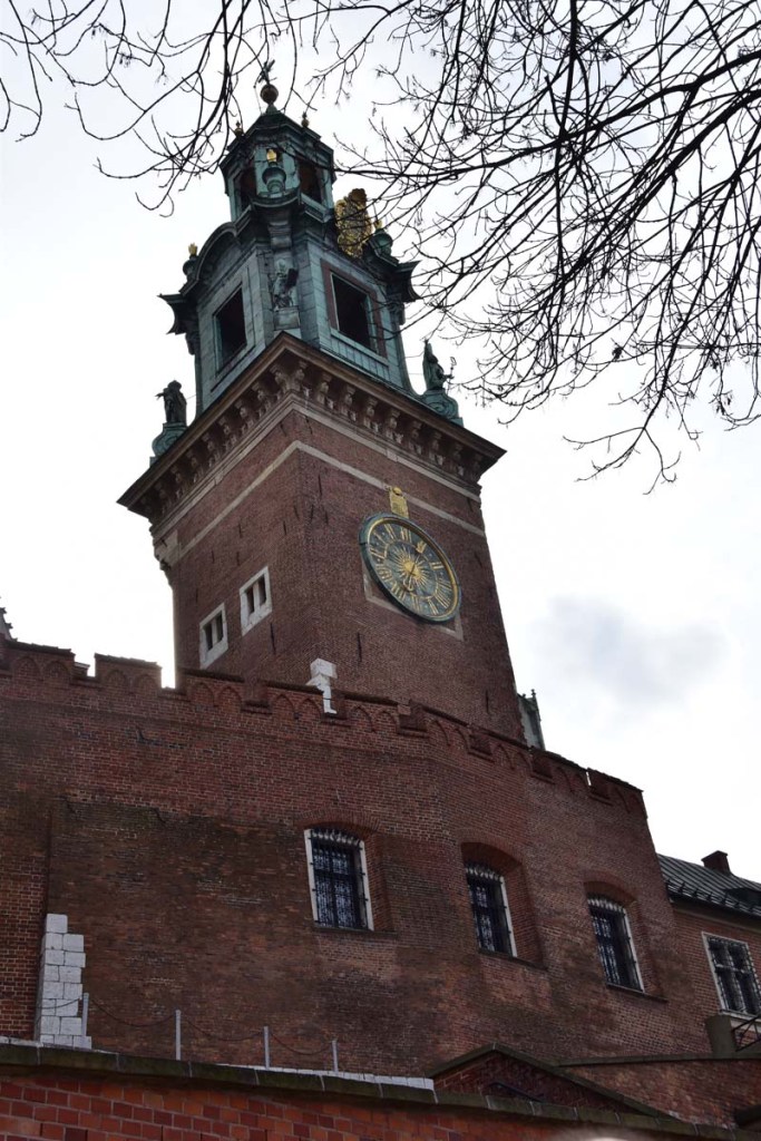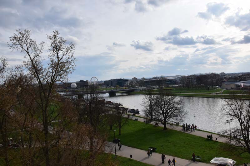 Nous aimons essayer les transports en commun des villes que nous visitons et nous n’avons pas dérogé à cette pratique, c’est pourquoi nous avons emprunté le tramway pour nous rendre de nouveau à la colline de Wawel où nous n’avions pas encore visité le château. Nous avons raté notre arrêt (!!!) et nous sommes arrêtés au suivant ce qui nous a permis de visiter la très jolie église des Bernardins. L’intérieur, de style baroque richement décoré, nous a ébloui avec ses dorures. Nous avons ensuite grimpé la colline pour nous retrouver dans les jardins, avec au passage, une jolie vue sur la Vistule.